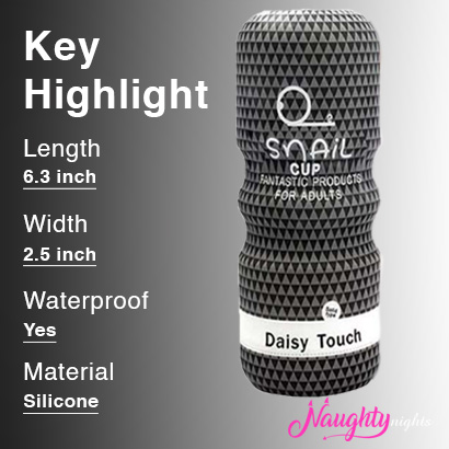 The Daisy Touch Snail Masturbation Cup is an innovative pleasure device designed to provide unparalleled satisfaction. With its sleek plastic casing and enticing features, this state-of-the-art toy is sure to take your solo play to new heights. Featuring a soft silicon sleeve with a lifelike vaginal opening, the Daisy Touch is crafted for the ultimate in realism and pleasure. The velvety smooth texture of the silicon sleeve caresses your skin, creating a tantalizingly pleasurable sensation with