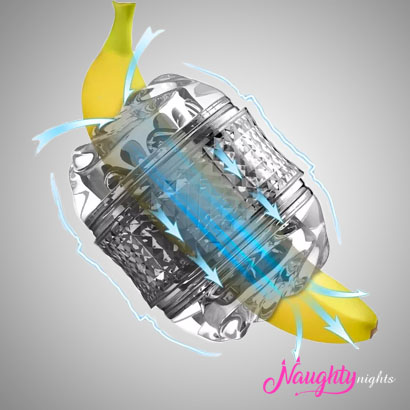 Quickshot Massage Cup offers unmatchable relaxing time for men who are looking for intensified stimulation. The device, as is given by the name, comes with double openings for massage. While the sleeve inside the cup is made to stretch as per user’s need, it also works as a suction cup with ribbed inner structure, offering a deep tissue massage at the site of use. Other than its great manual massaging capabilities, it also offers 360 degree rotation, making sure the targeted area stimulates to t